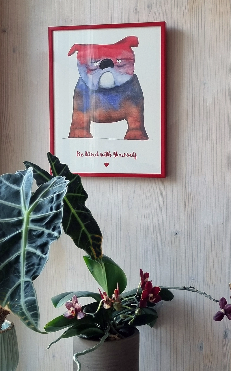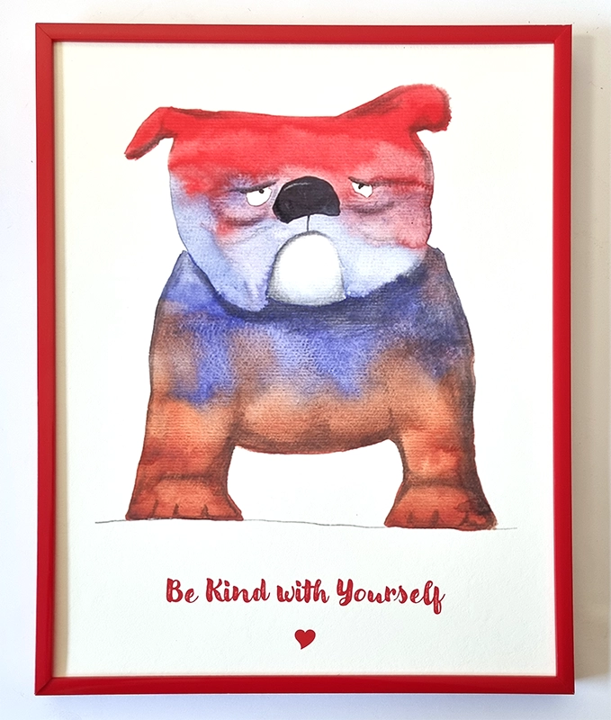 • Reproduction d'une aquarelle d'Esther Maurer, avec texte "Be Kind with Yourself"