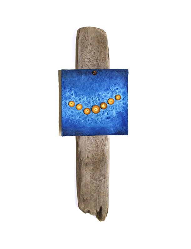fixée sur bois flotté.